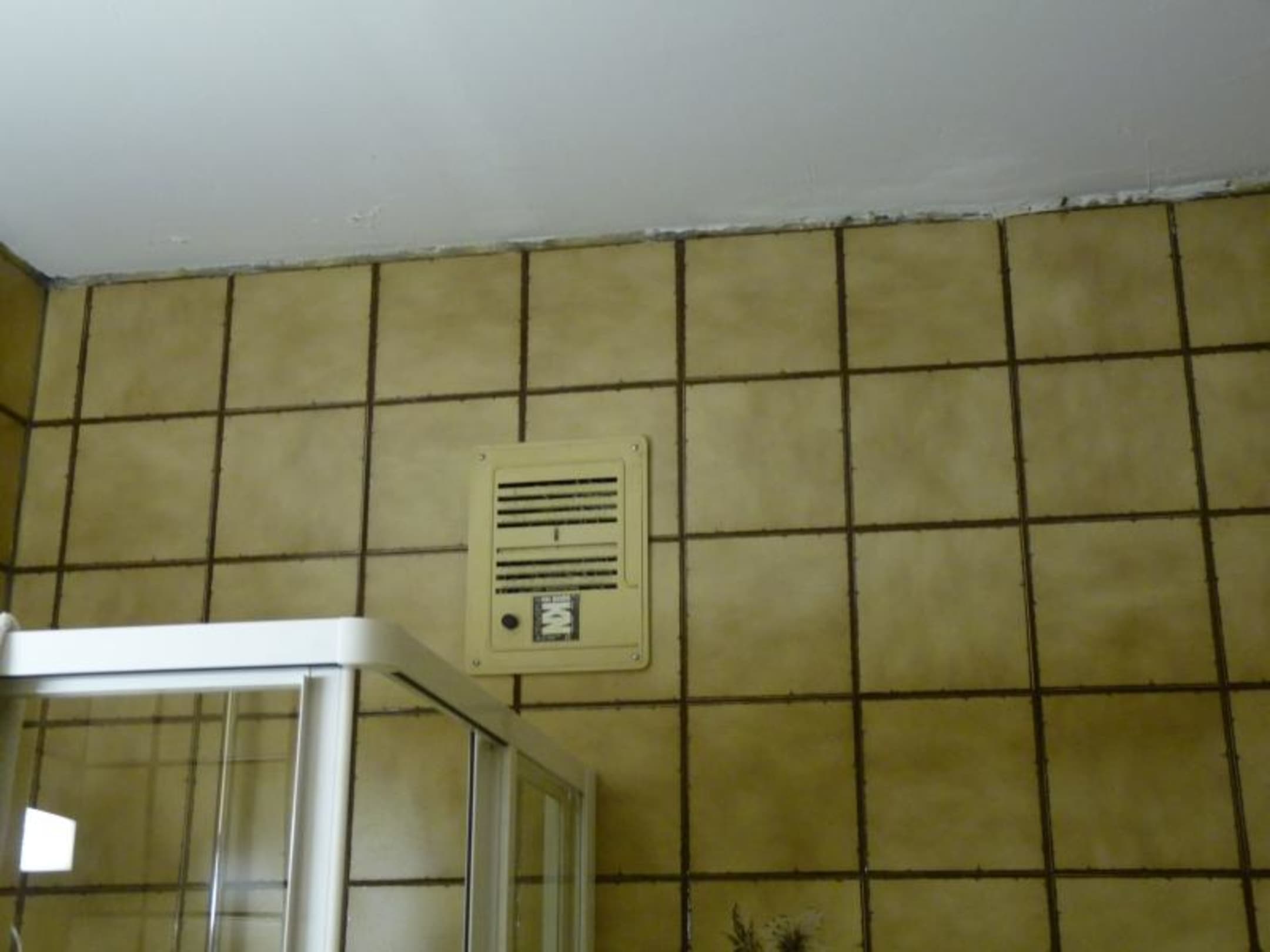 Hier seht ihr den Abschluss zwischen Fliesen und Decke im Bad - nicht schön anzusehen