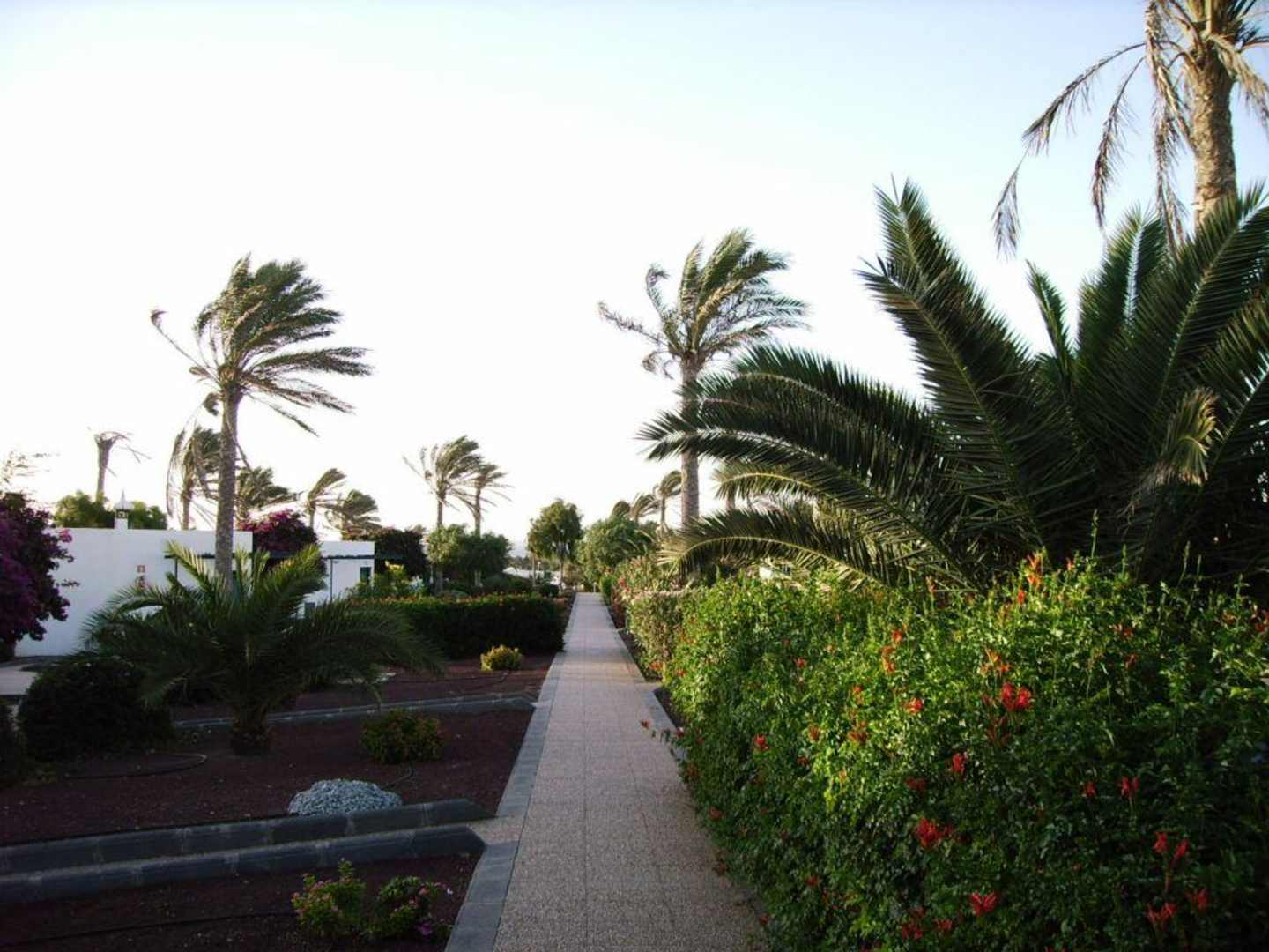 Der Weg führt von den hinteren Bungalows zum Pool und zur Lobby
