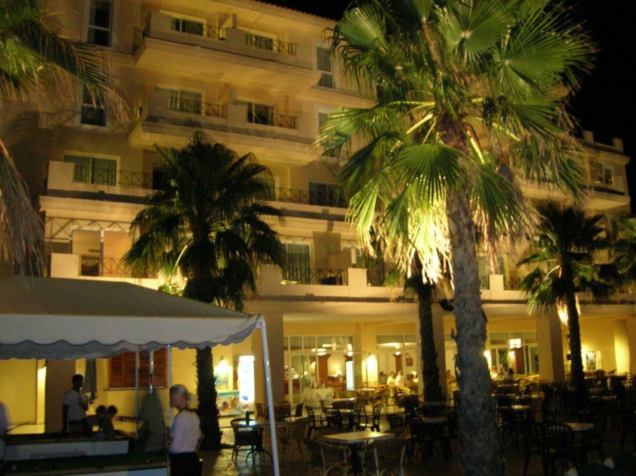Hotel Mar Blau, Poolseite, bei NachtAussenansicht des Hotels Mar Blau, von der Poolseite aus betrachtet