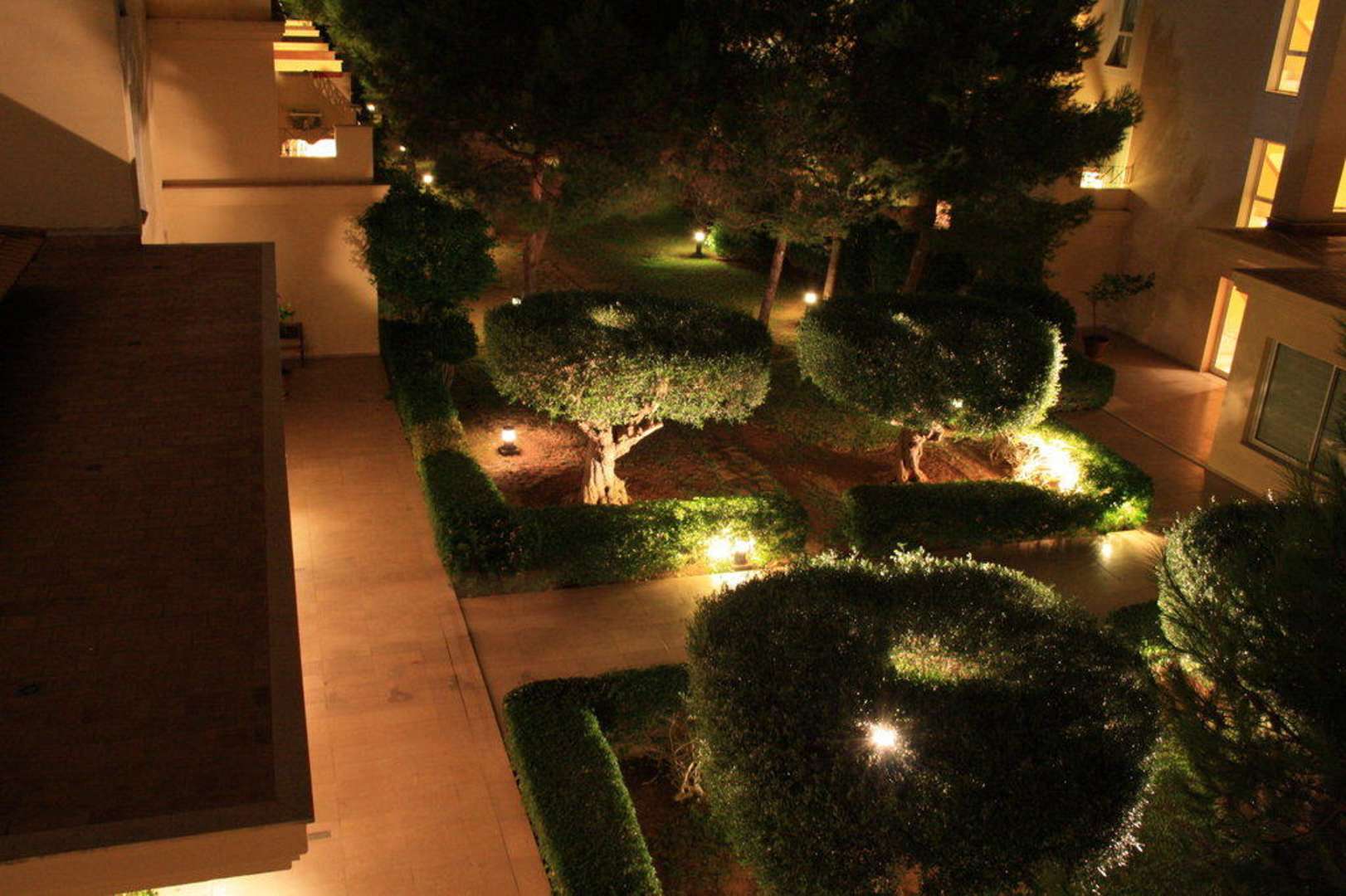 Stilvoller Innenhof im DunkelnBlick vom Balkon unseres Appartements in den schönen Innenhof bei Nacht.