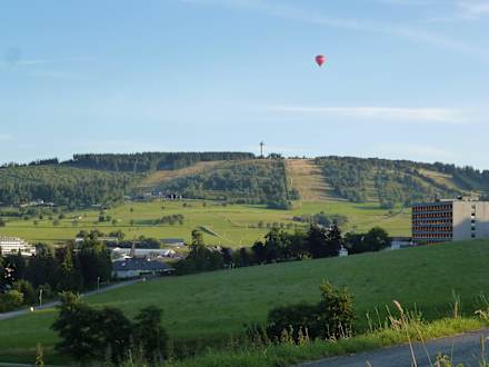 Im Vordergrund das Hotel mit Blick zum Ettelsberg