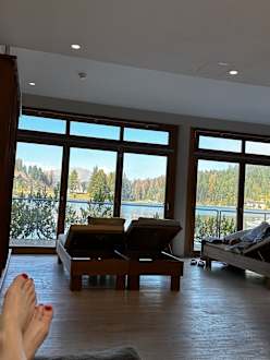 Der Blick auf den See vom Ruheraum aus
