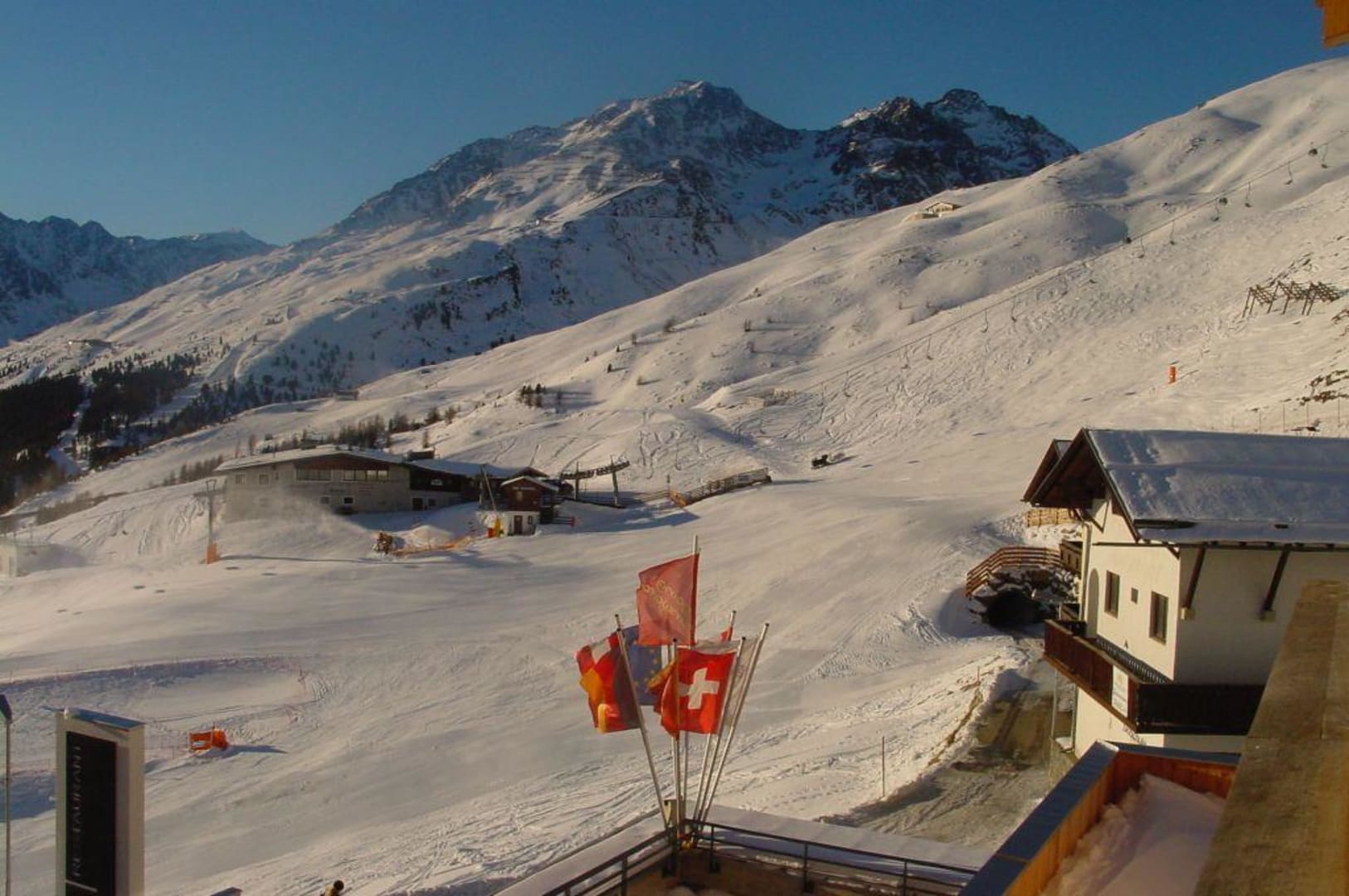 Blick vom Zimmerbalkon auf das Skigebiet