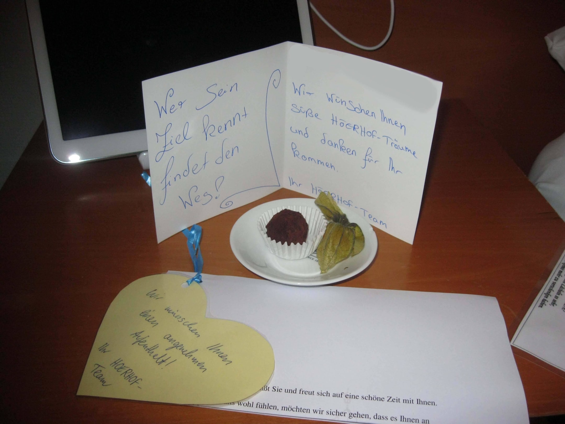 Sehr freundliche Begrüßung auf dem Zimmer
