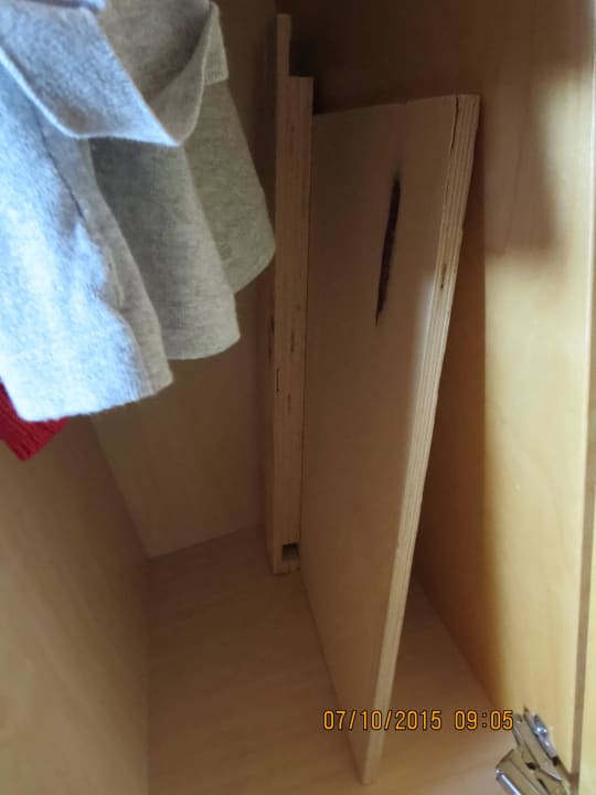 Im Kleiderschrank sind unerklärliche Holzteile gelagert