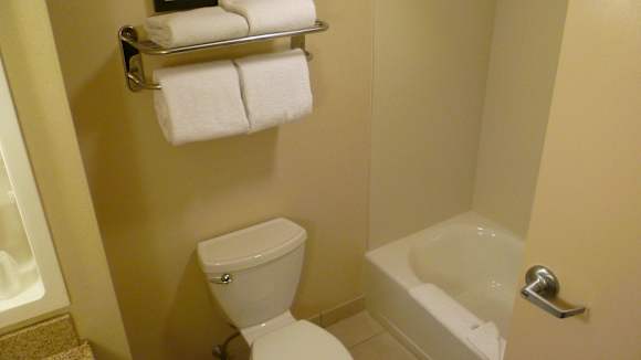 Badewann mit Duschfunktion, saubere Handtücher