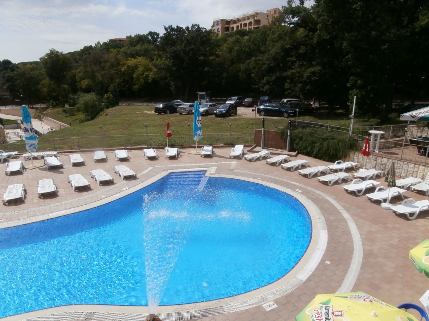 Basen, z tyłu hotelowy parking