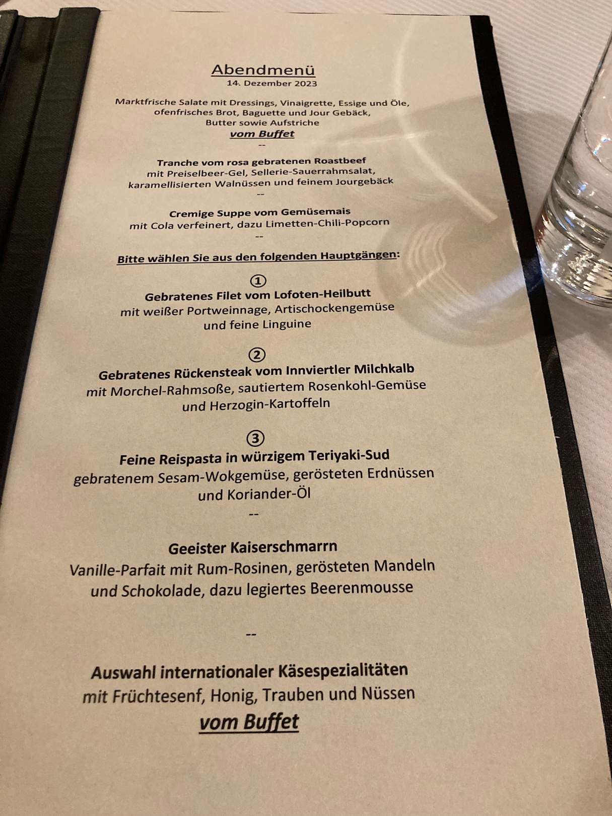 Menüauswahl am Abend