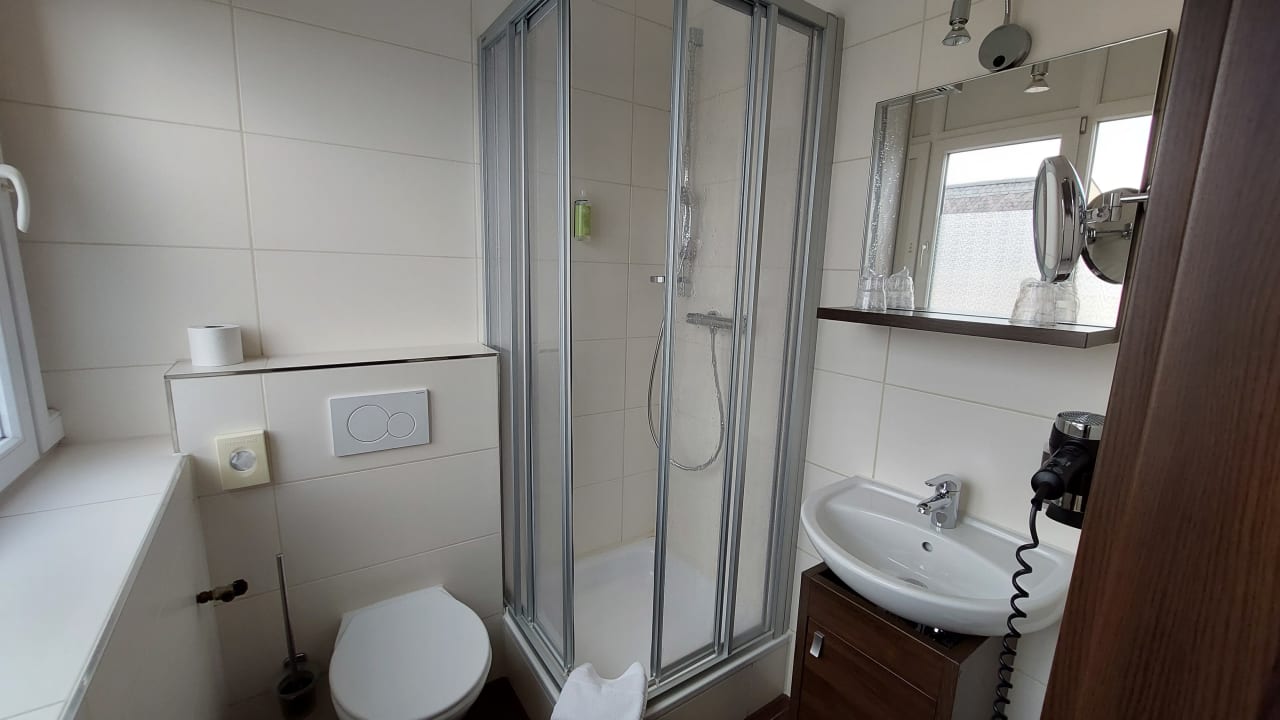 Das Bad ist klein, aber bis auf den Heizkörper ist alles da was man braucht.