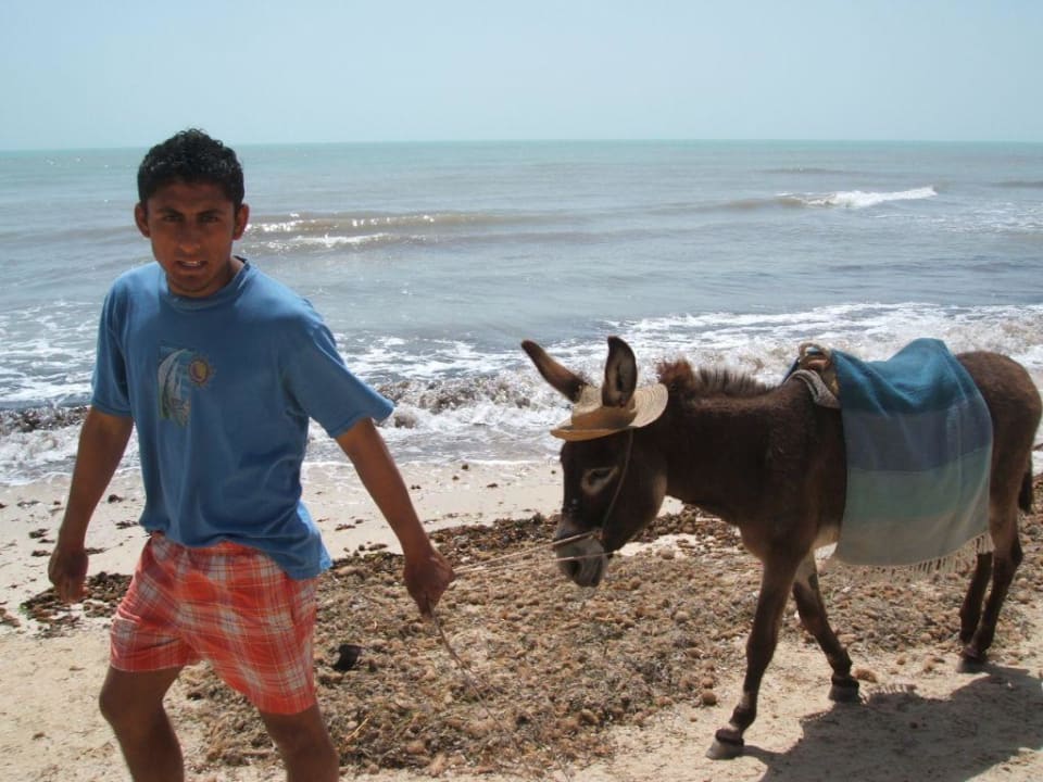 Esel mit Hut wegen der Hitze