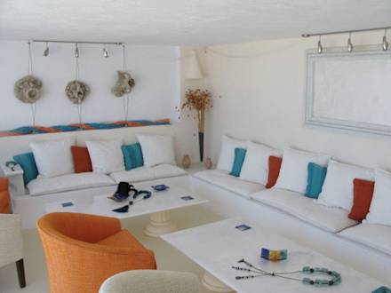 The bar of Homeric PoemsBar room next to the terrace and the pool of Homeric Poems with nice design, protected from the sun