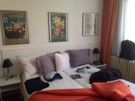 Zimmer mit großem Doppelbett in Rennsportmotiv