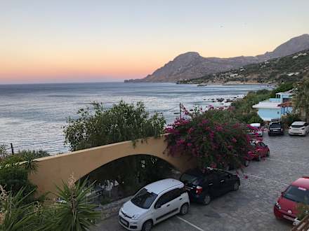 Auffahrt und Parkplätze am Hotel.