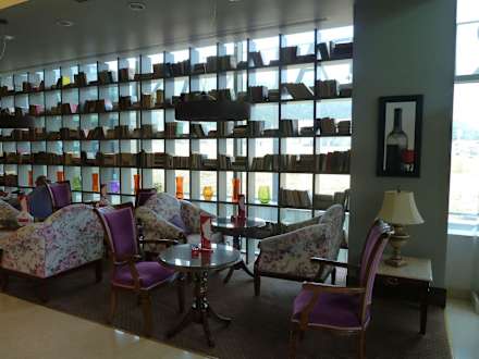 Sitzbereich vor der Bar mit Bücherwand