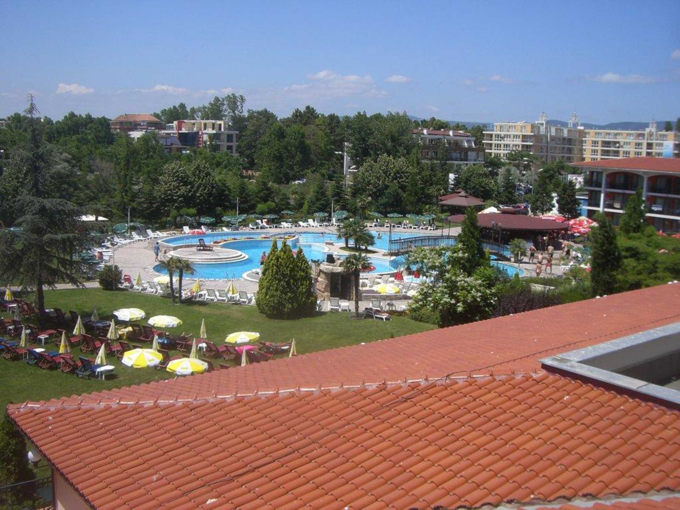 Blick vom Balkon auf Pool
