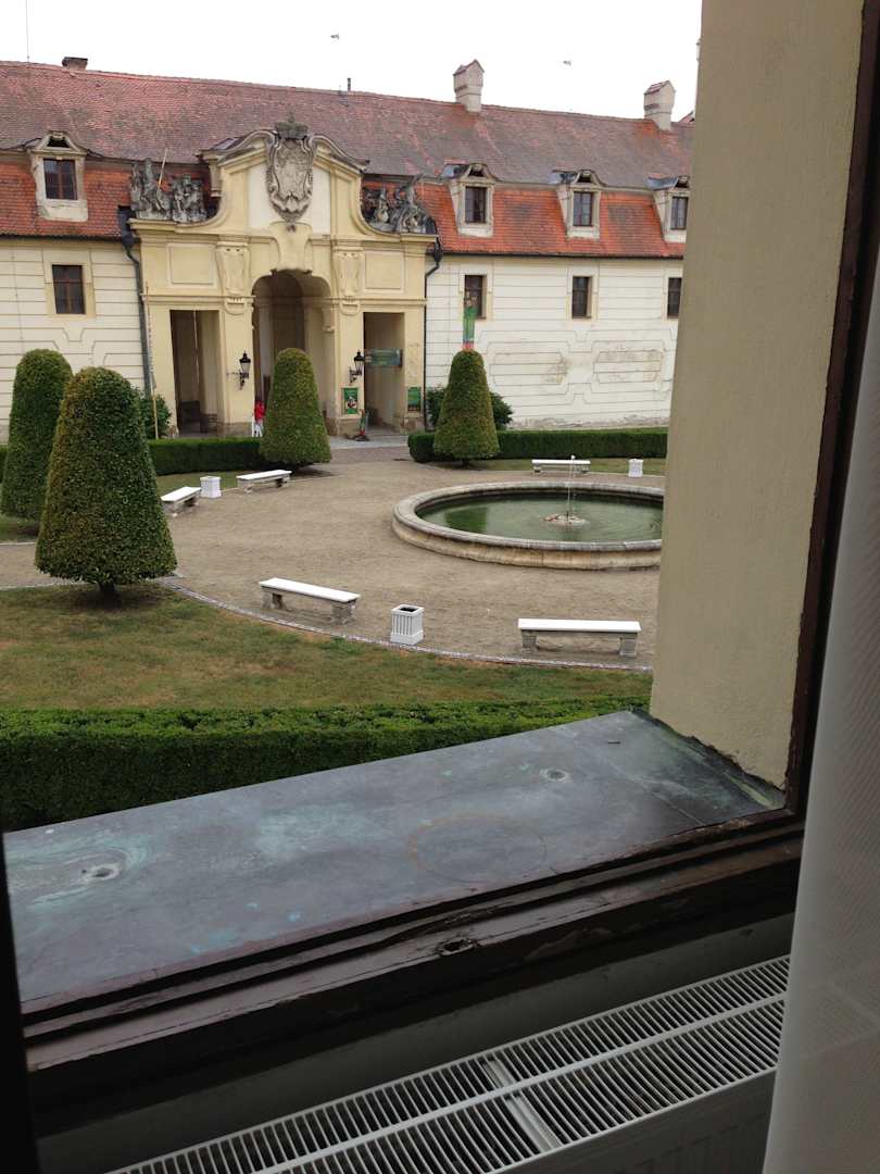 Ausblick zum Innenhof mit Brunnen