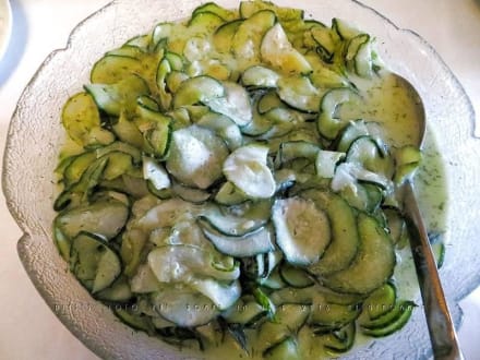 Schüssel mit Gurkensalat abendlichen Salatbüffet.