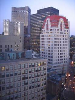 Aussicht aus dem Hyatt Regency BostonAusblick aus dem Hotelzimmer im 15. Stock auf die Innenstadt Bostons.