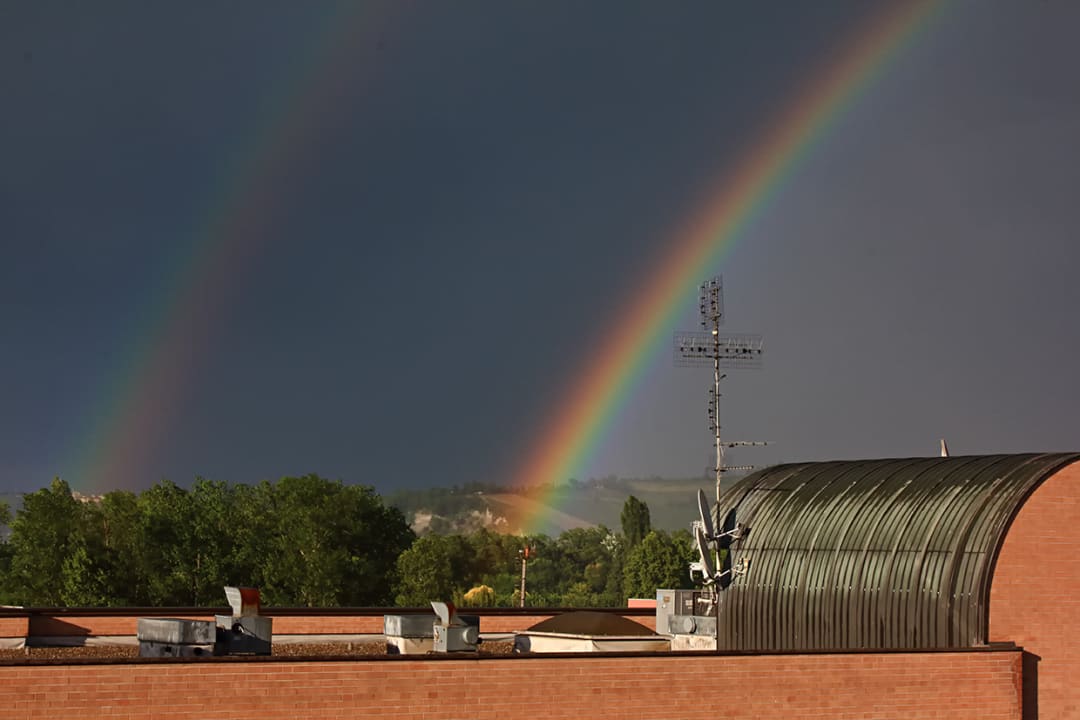 Blick von der Dachterrasse Hotel Ristorante I Castelli in Alba Piemont.