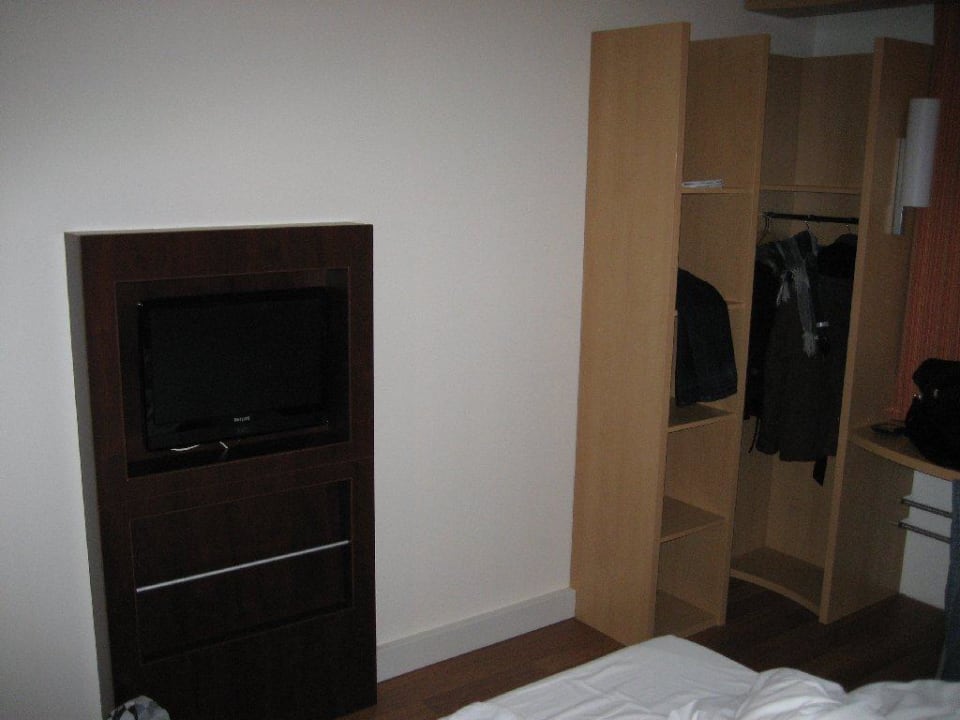 Flat-Screen TV und offener SchrankHochwertiger Philips LCD Flachbildschirm und der offene Schrank in der Ecke.