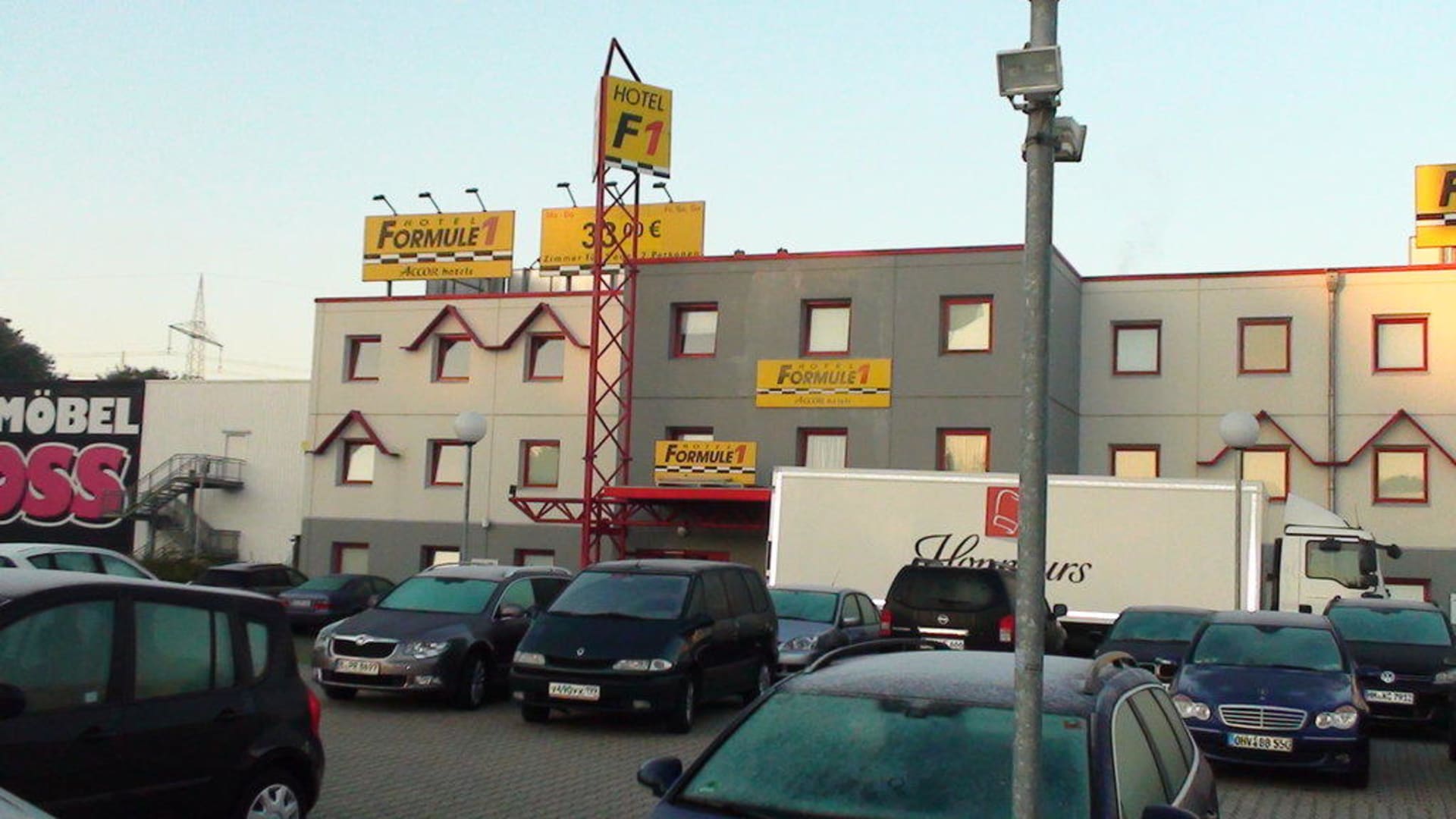 Ausblick aufs Formule 1 Hotel mit Parkplatz