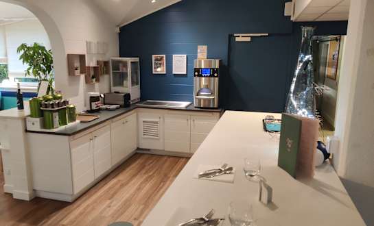 Hier wird das Frühstücksbuffet aufgebaut.
