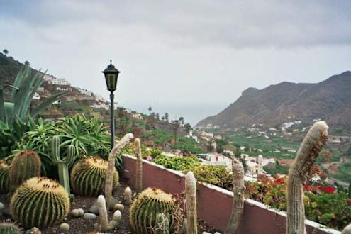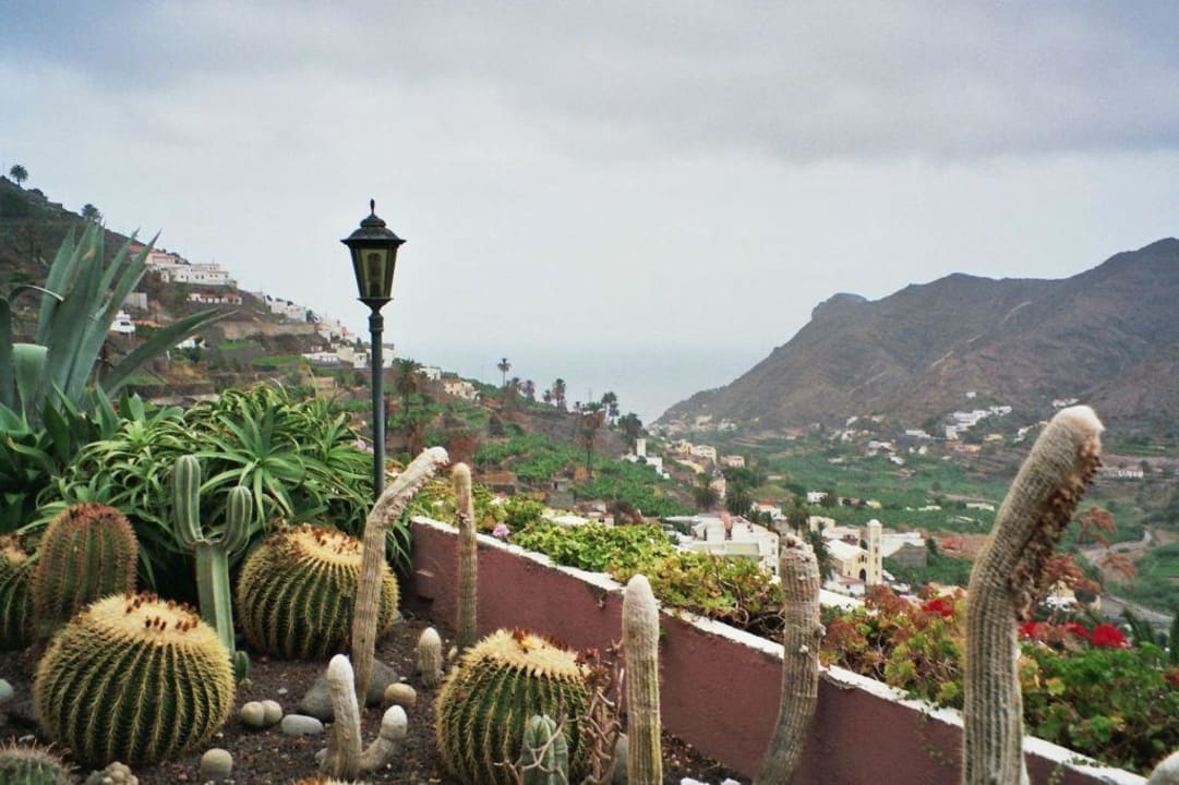 Blick ins Tal und auf den Atlantik von der Frühstücksterrasse aus
