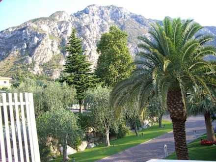 Blick aus Zimmer auf Eingangsbereich und Berge