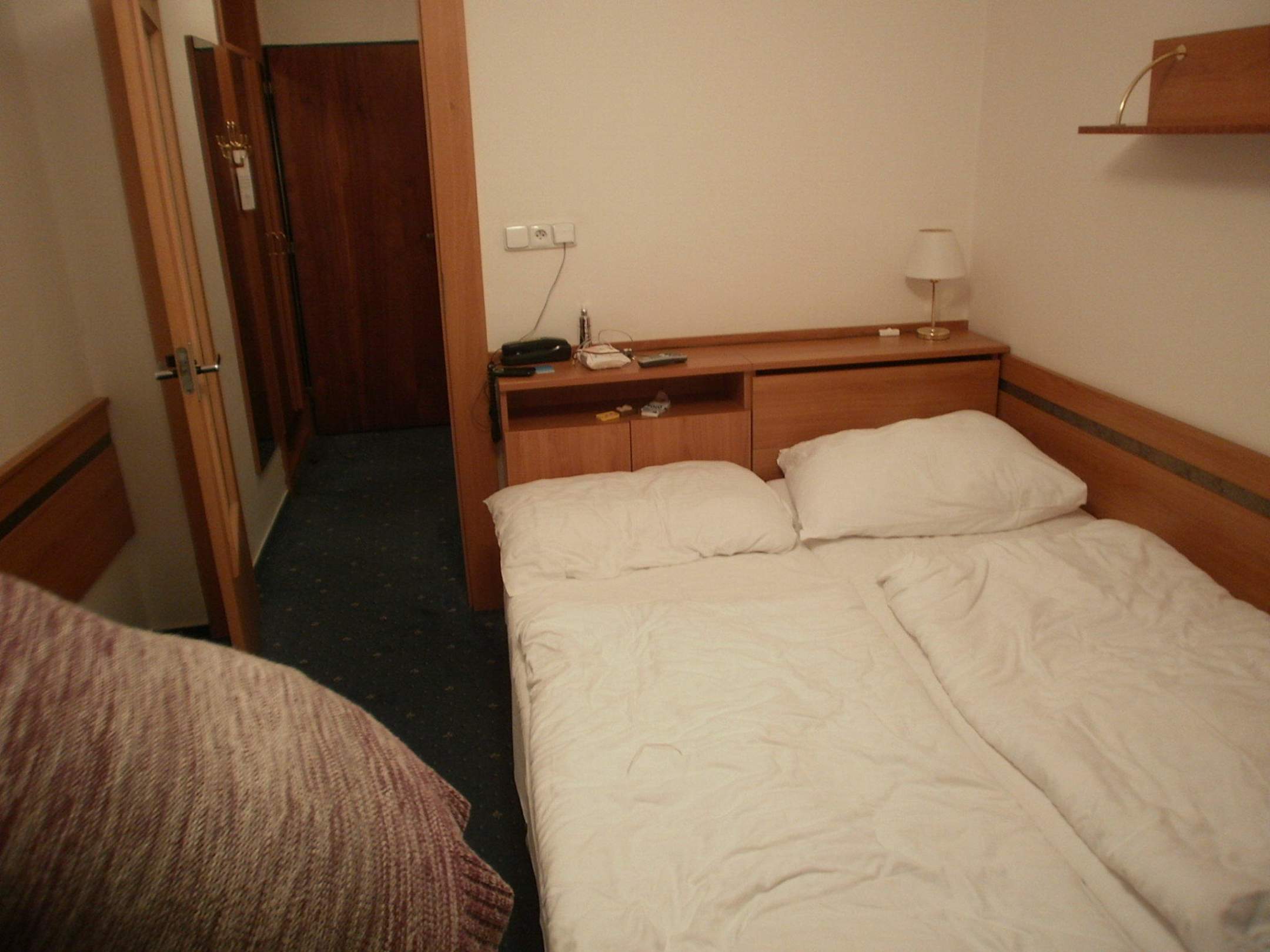 DoppelzimmerWar bereits am 2.Tag!Betten waren sehr ordentlich vorher.sind 2 zusammengestellte Einzelbetten(sehr hart)