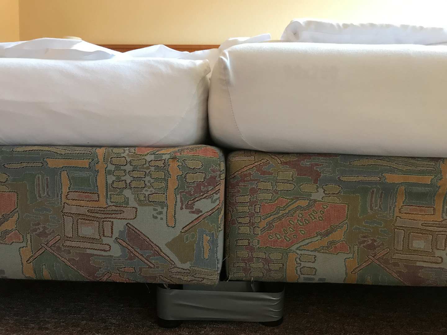 ZimmerBetten mithilfe von Panzertape zusammengeklebt.