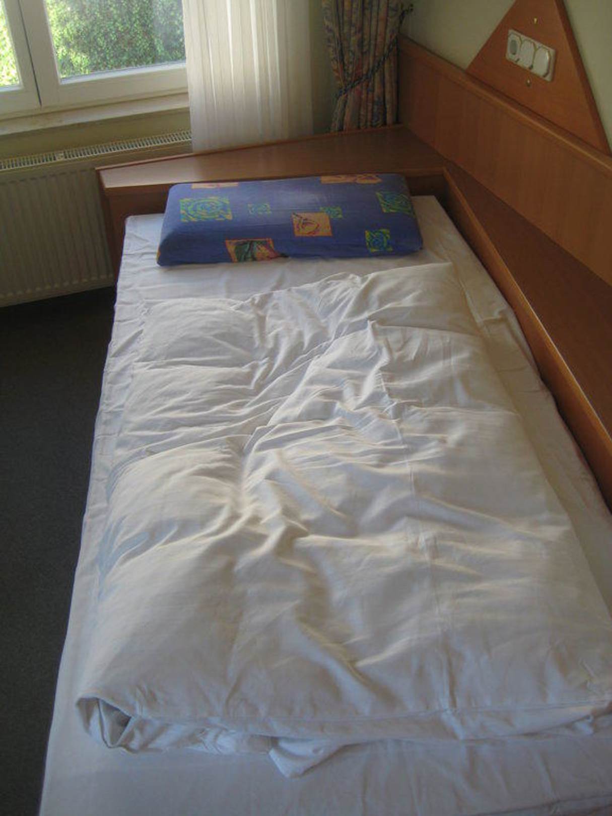 Blick auf das Einzelbett im Zimmer