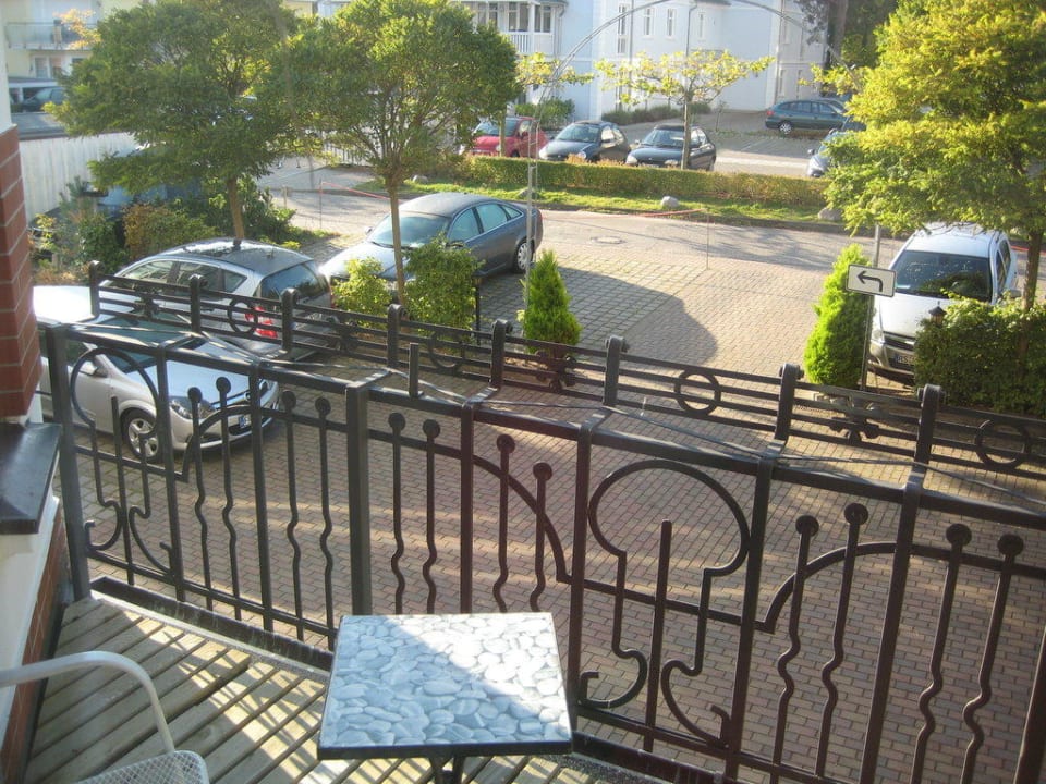 Blick vom Balkon auf den Hotelparkplatz