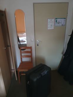 Rechte Zimmerseite vor dem Schreibtisch. Schrank war ohne Safe