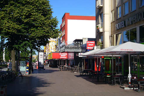 Rechts am Rand das Hotel, Bllck die Reeperbahn runter