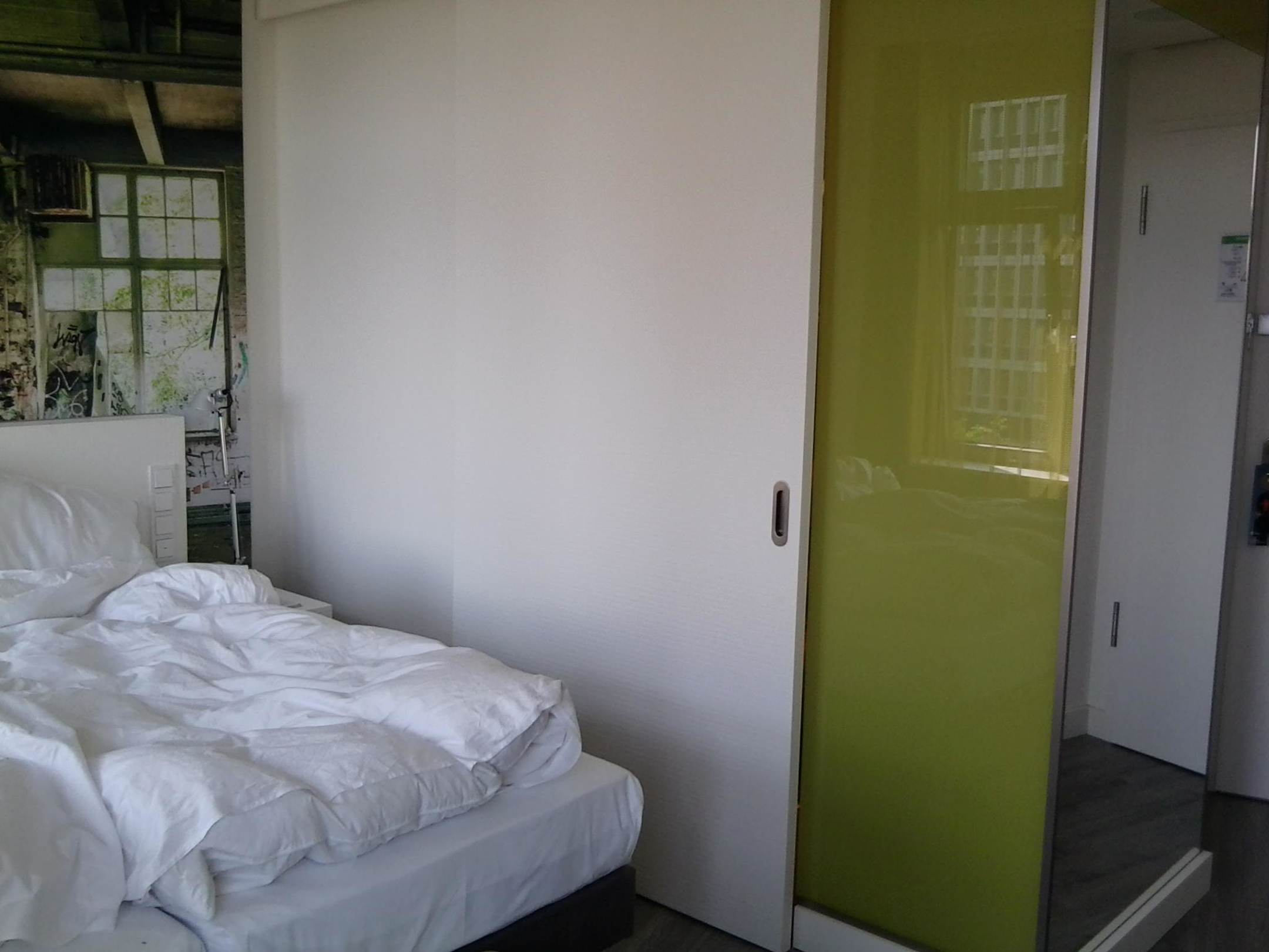 Das Bad ist hinter der Schiebetür
