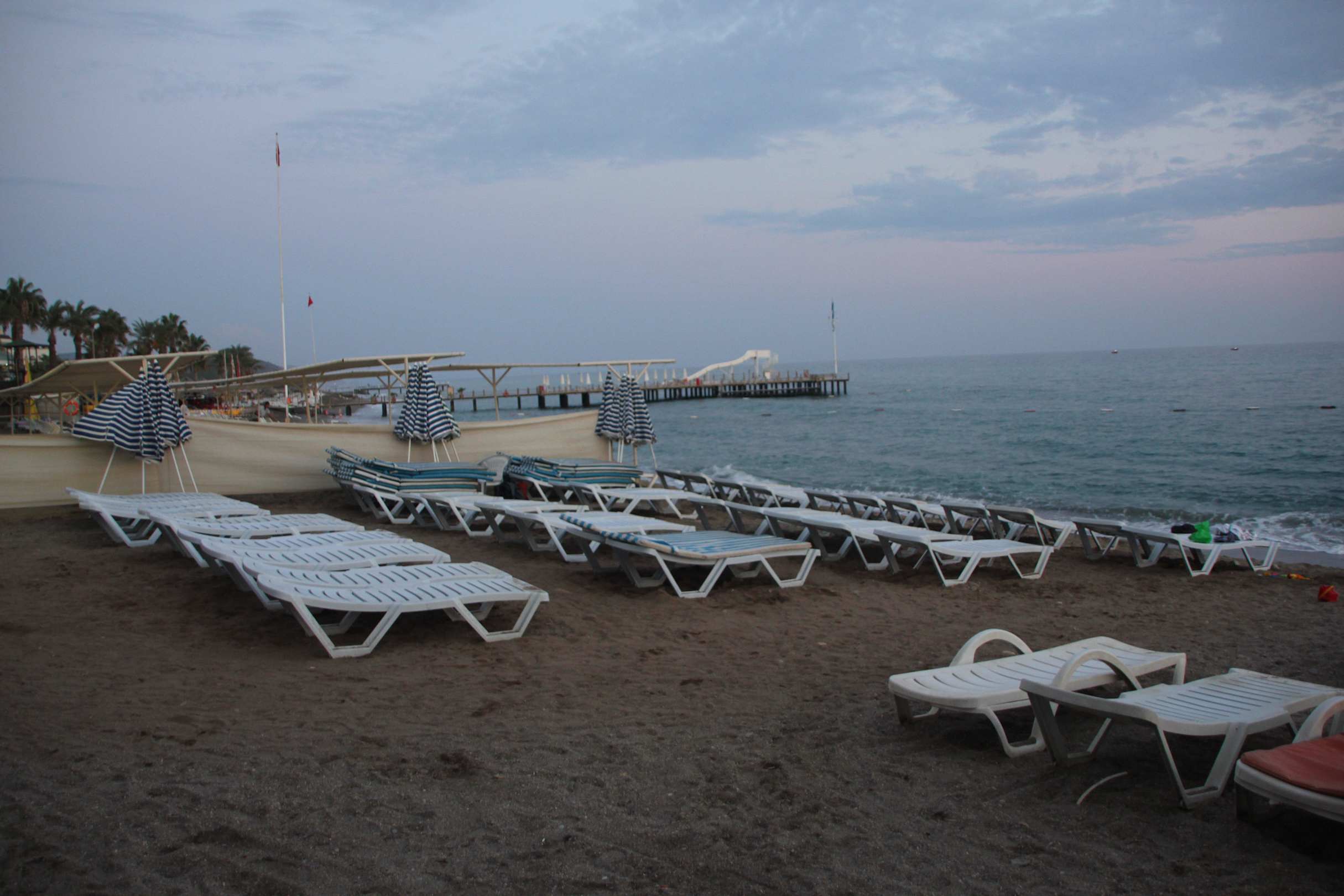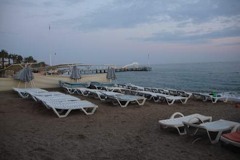 "Privatstrand"Diese vier Reihen zu je ca. acht liegen werden im Katalog als "Privatstrand" angepriesen. Etwas dürftig für die ca. 80-100 Zimmer.