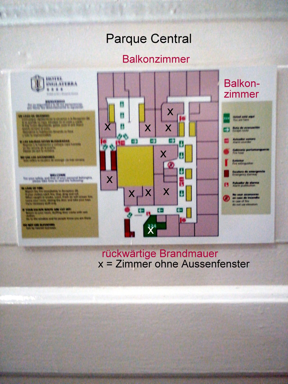 Weißes Kreuz = Zimmer 324, Fenster in der Brandmauer