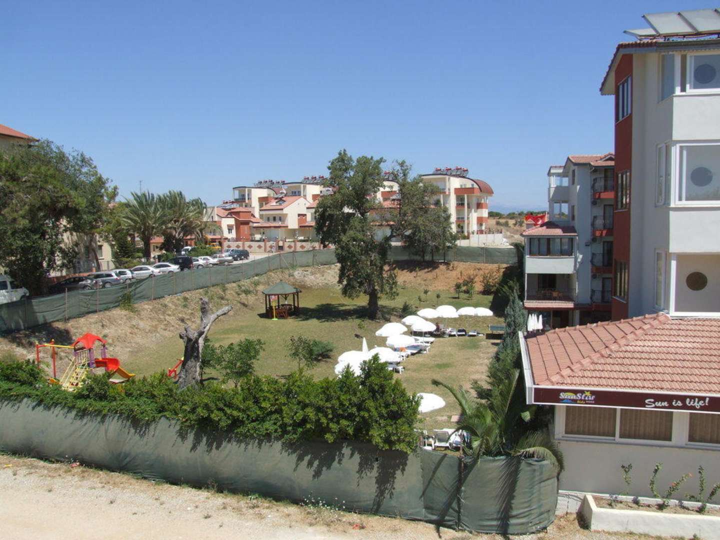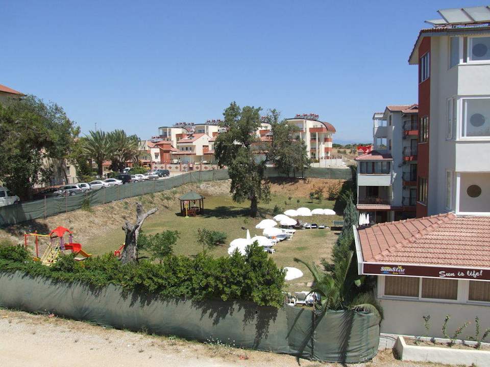 Grundstück des SunStar, recht überschaubar, Liegewiese und Spielplatz