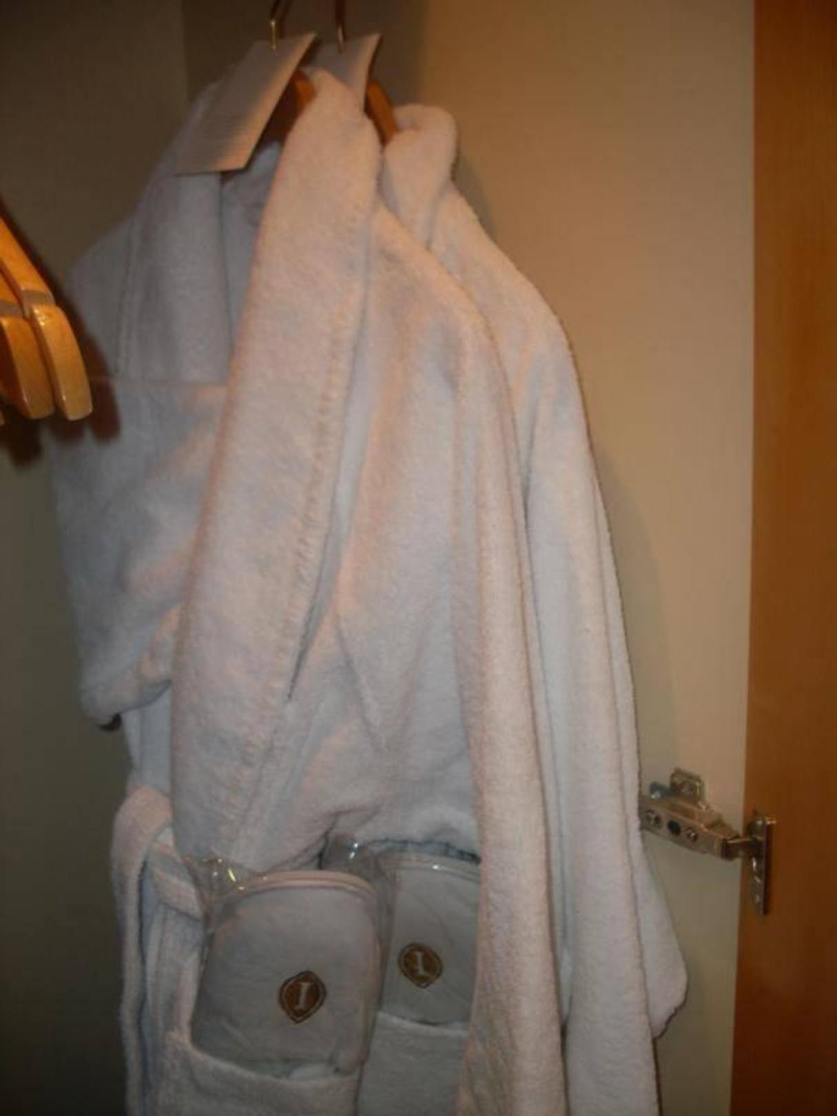 Zwei Bademäntel und Pantoffeln sind vorhanden.