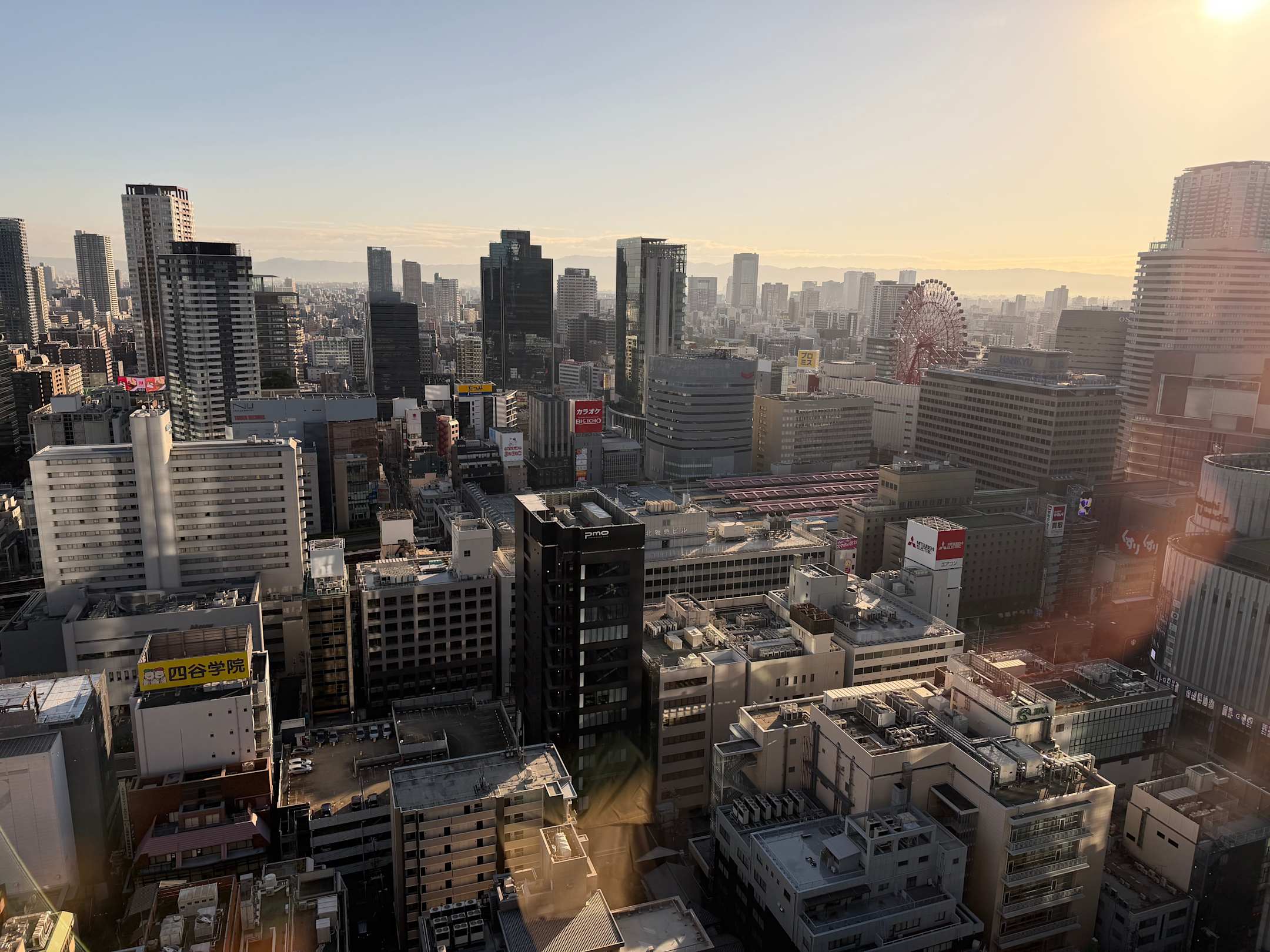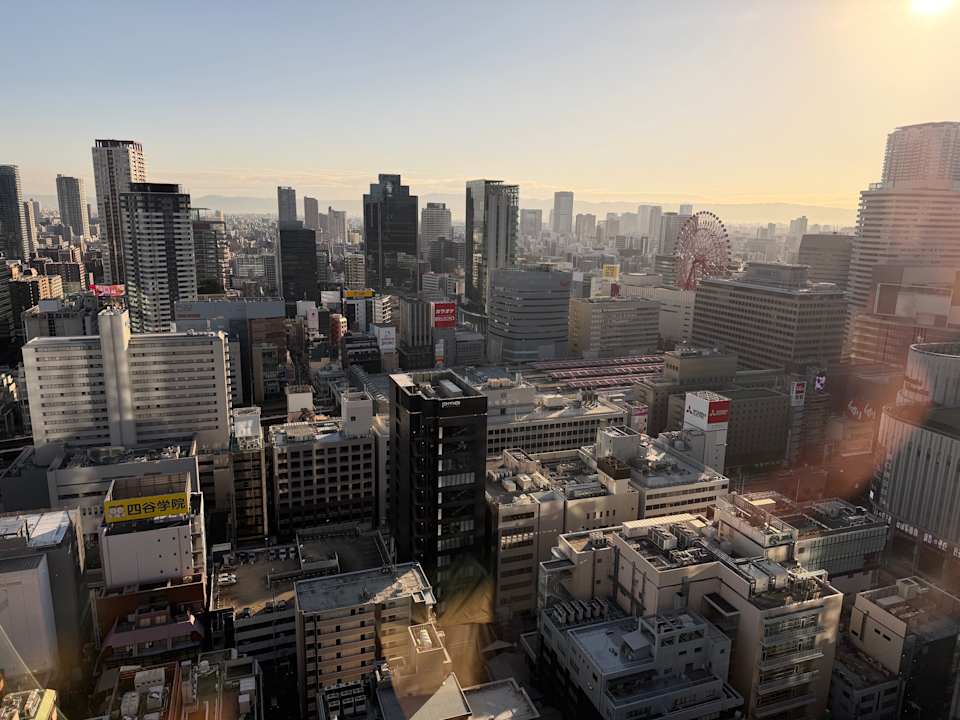 Blick auf Osaka aus dem Buffetrestaurant beim Frühstück