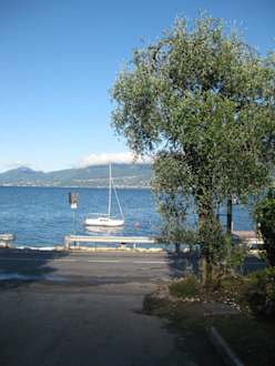 Blick über den GardaseeBlick von der Hofeinfahrt des Hotels Internazionale auf die gegenüberliegende Seite des Gardasees.