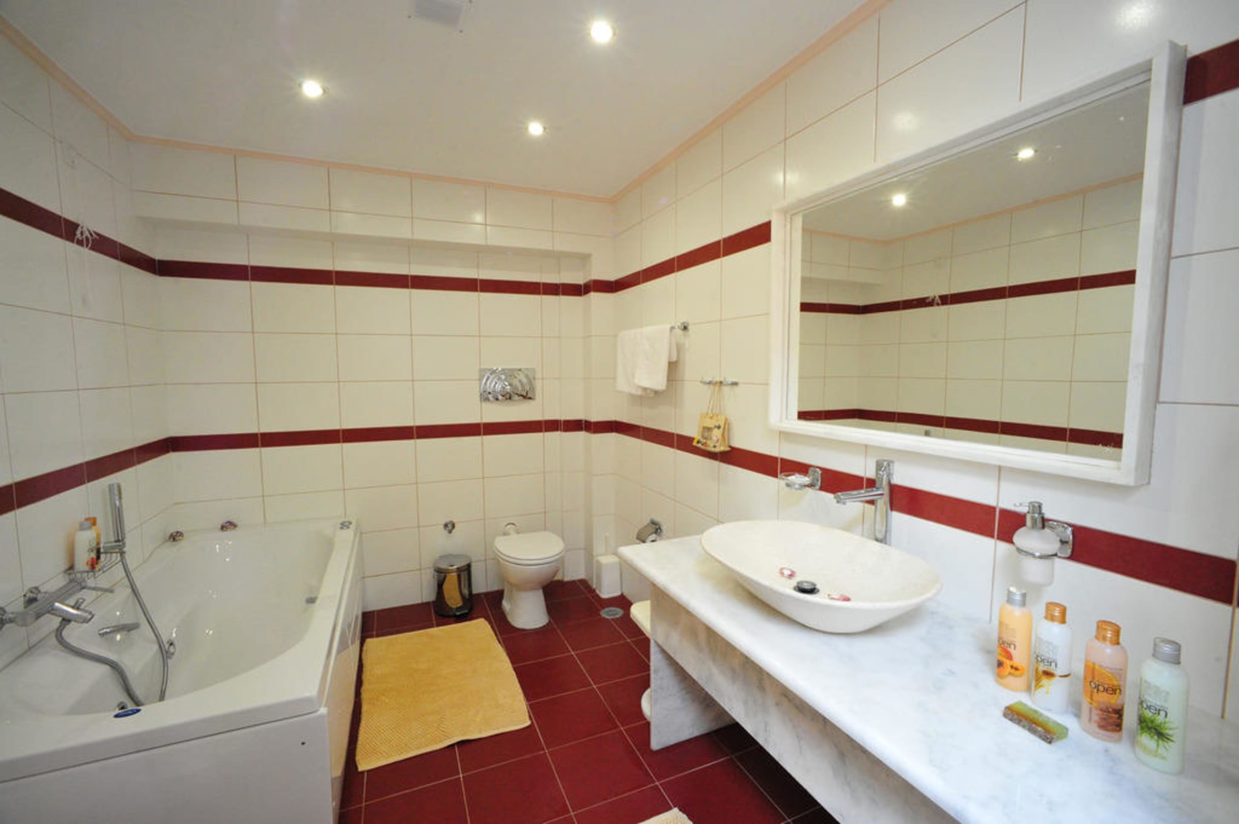 Marble bathroom with jacuzzi in suite