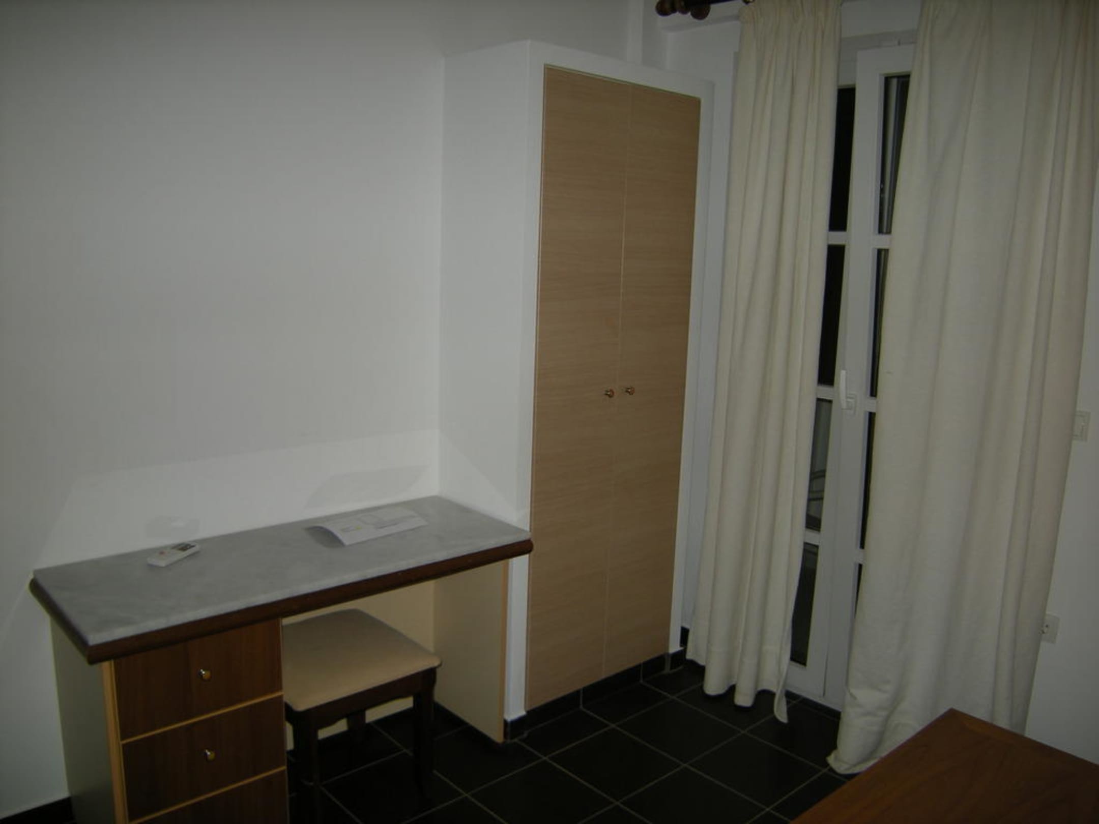 Szafa i stolik w mniejszym pokoju