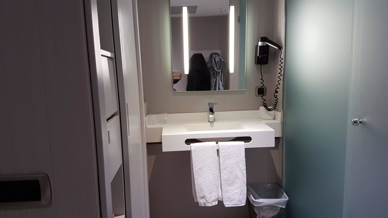 Bad - links Schrank und rechts Dusche+WC