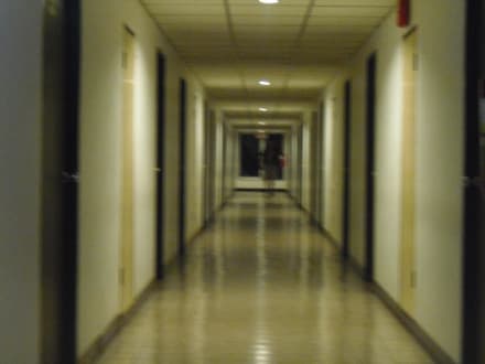 Пустынный коридор с дверями в номера