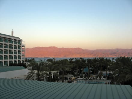 a little further away down the hall so the other tract of the hotel doesn't block the view of Aqaba so much. A little higher up (this was actually only the second floor) would have been even nicer.