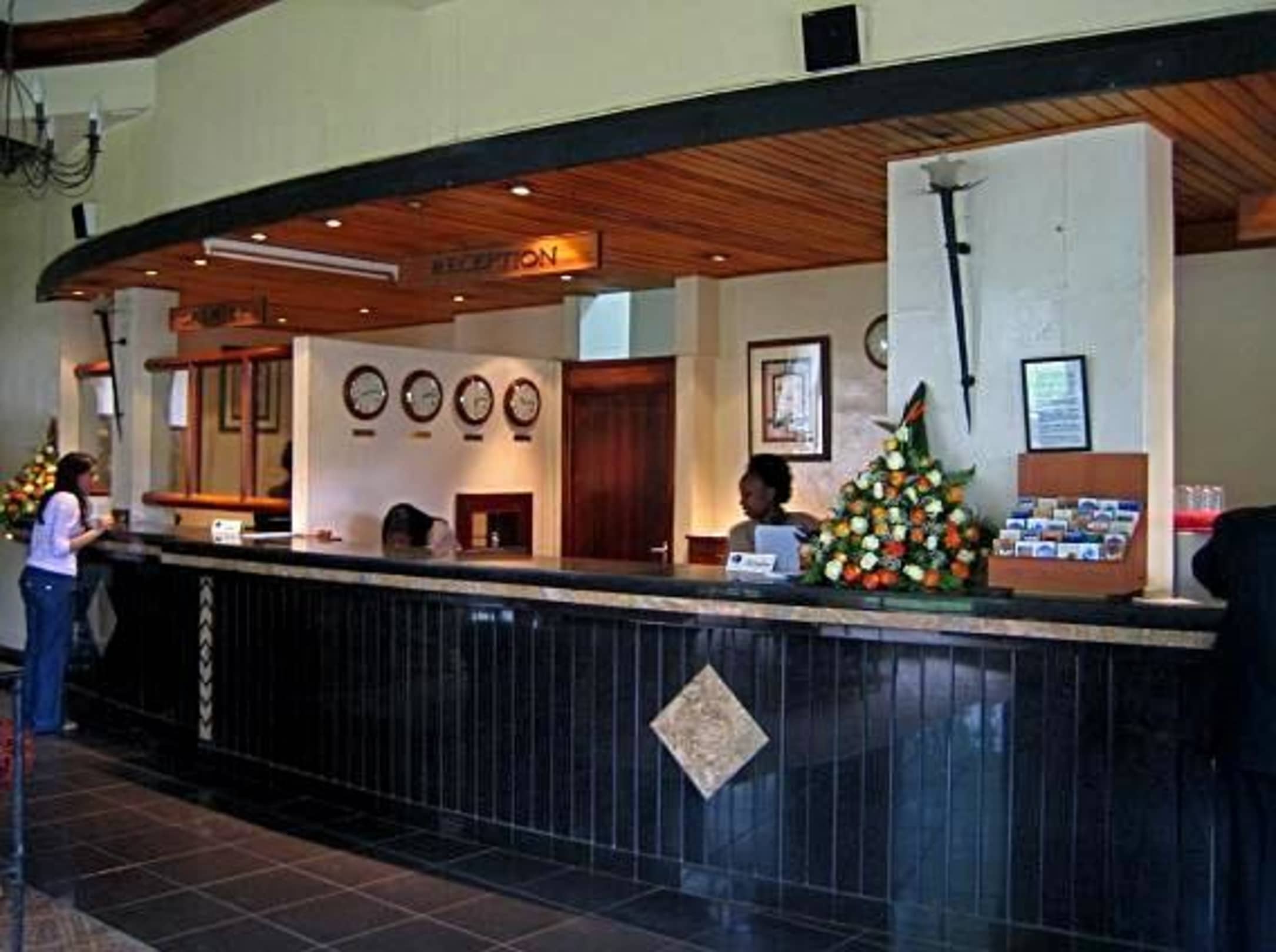 Überall im Hotel stehen frische Rosengestecke.