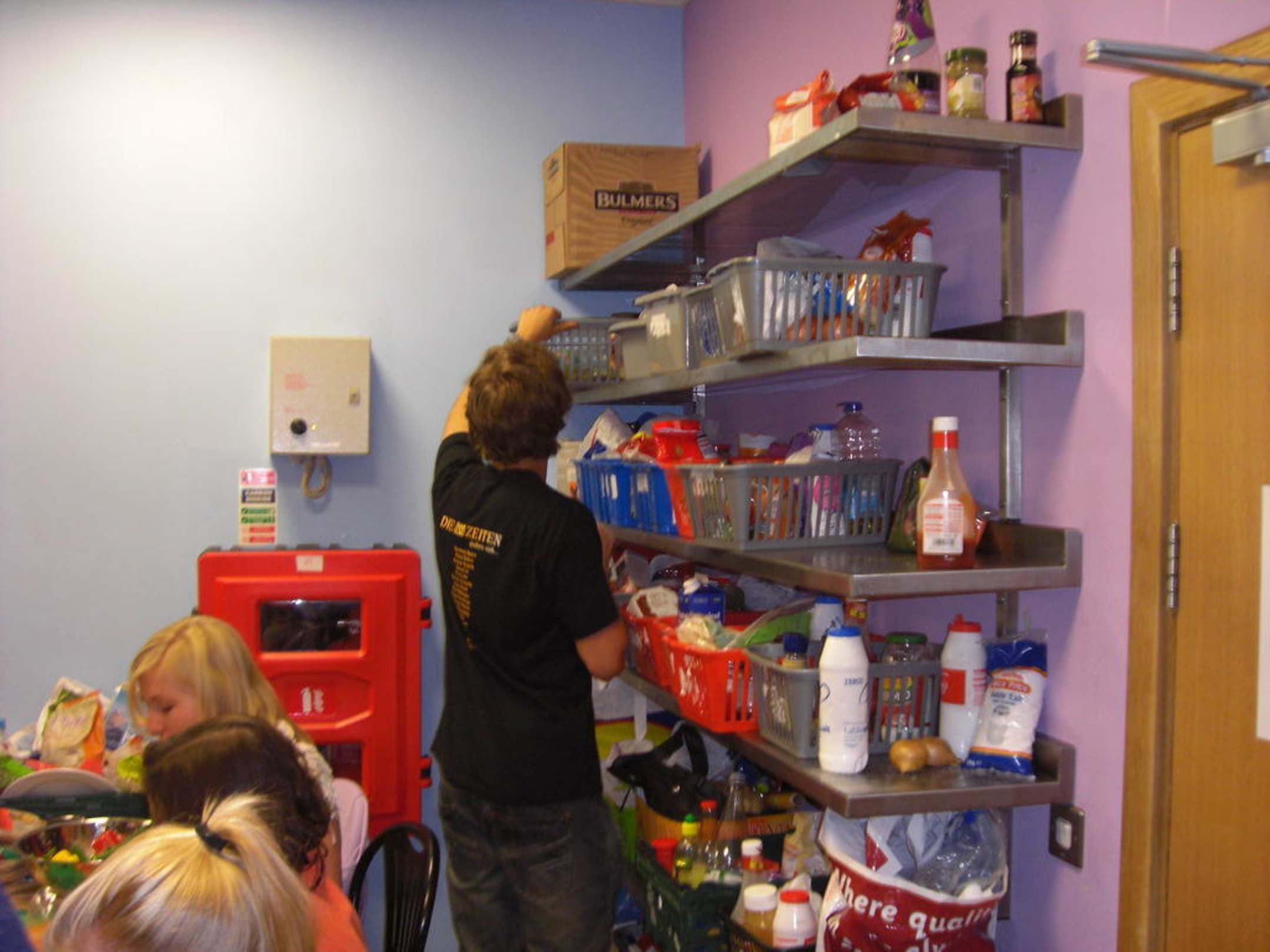 Hier der beschriebene Schrank, von dem mindestens die Hälfte aller Produkte bereits verdorben waren, weil sie von den Gästen nicht wieder mitgenommen wurden.