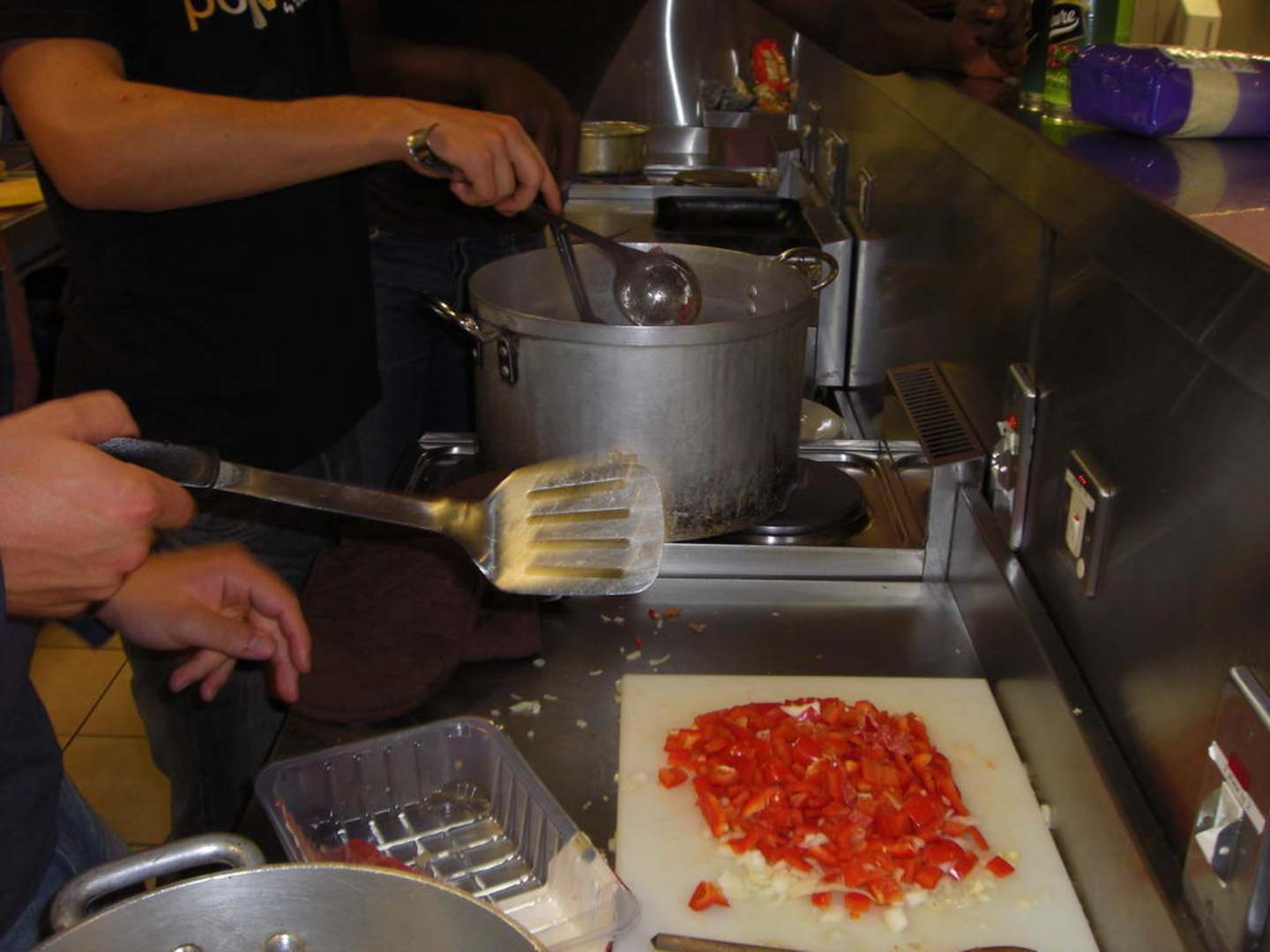 Wie man sieht mussten wir zum Erwärmen eines großen Topfes zwei Kochzellen, die auch schon sehr alt waren, verwenden. Das Kochen für viele Personen war somit extrem zeitintensiv.
