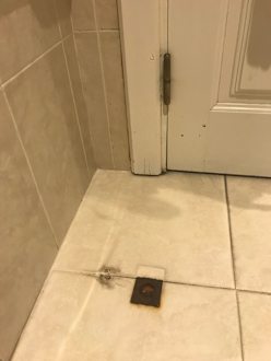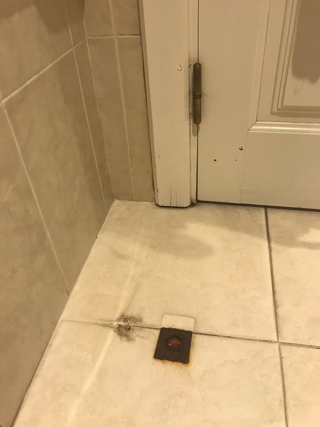 Bad: verdreckt und gefährliche, rostige Bodenverankerung.